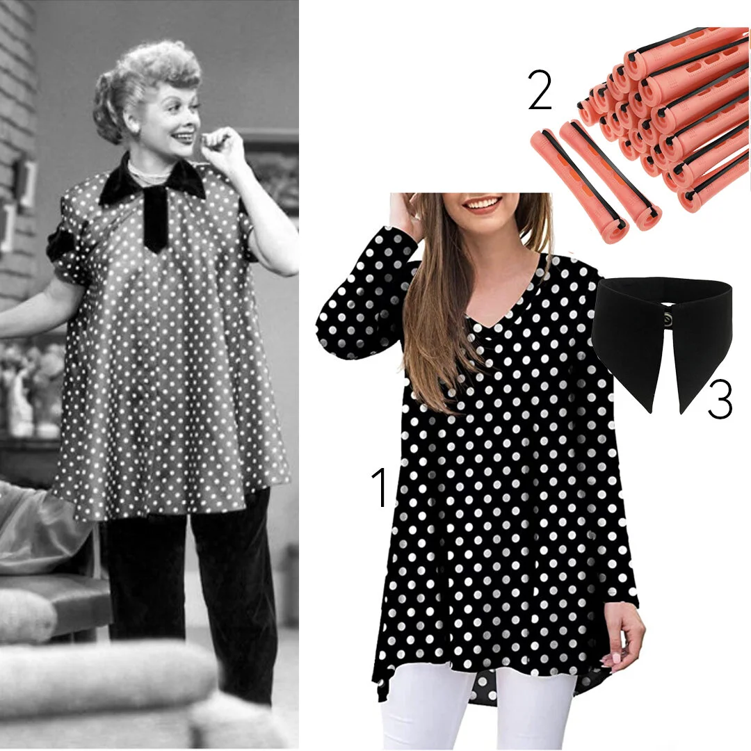 A throwback to 1952 and a tip of the—well, perm—to comedian Lucille Ball, who broke barriers for appearing on-screen throughout her pregnancy. She was expecting her second baby with co-star Desi Arnaz while filming the second season of I Love Lucy. Fun fact: every script showing a pregnant Lucille Ball had to be reviewed by a priest, a minister, and a rabbi.